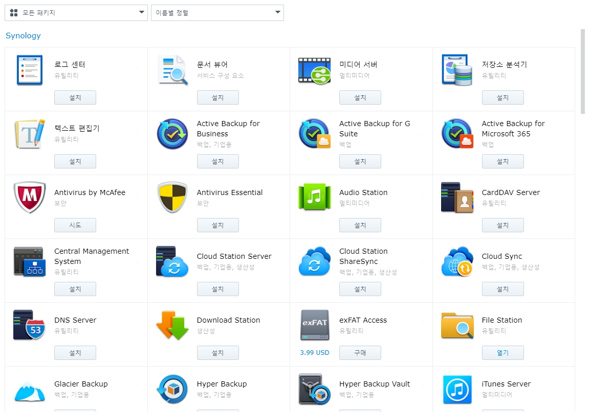 그 모든것이 시놀로지 패키지에 있더라
