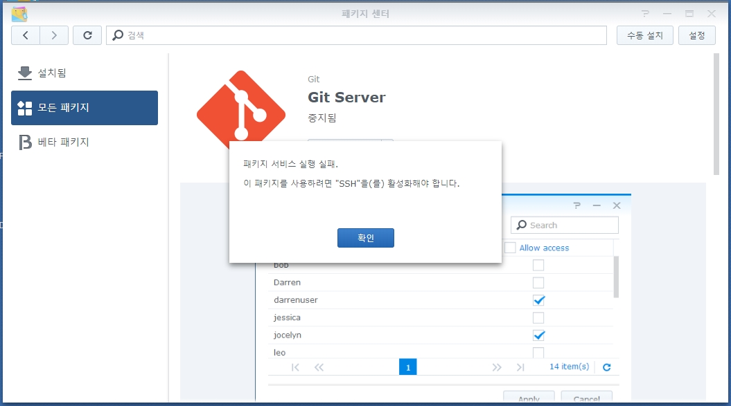 gogs 가 정식 패키지가 아니다 보니 패키지 센터에서 설정을 좀 바꿔 줘야한다.