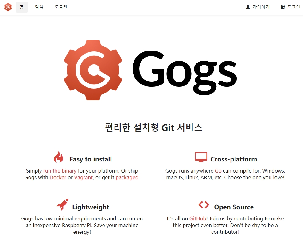 Gogs 는 이 Git을 웹기반으로 관리하기 위한 패키지다.