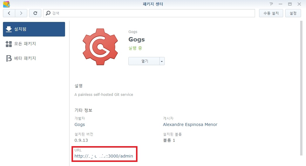 근데 Gogs는 공식 시놀로지 패키지가 아니다.