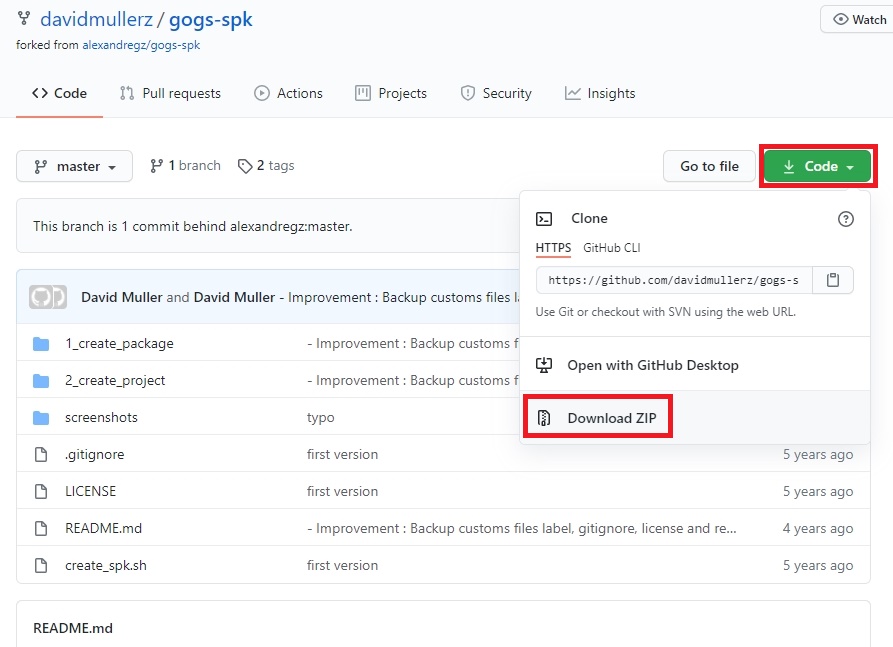 Gogs-spk-master.zip 을 다운로드한다. 이파일은 손쉽게 gogs.spk를 생성할 수 있게 해준다.