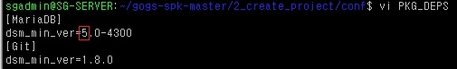 E. vi 편집기를 이용해 gogs 가 MariaDB 10을 사용할 수 있게 PKG_DEPS 파일을 수정한다.