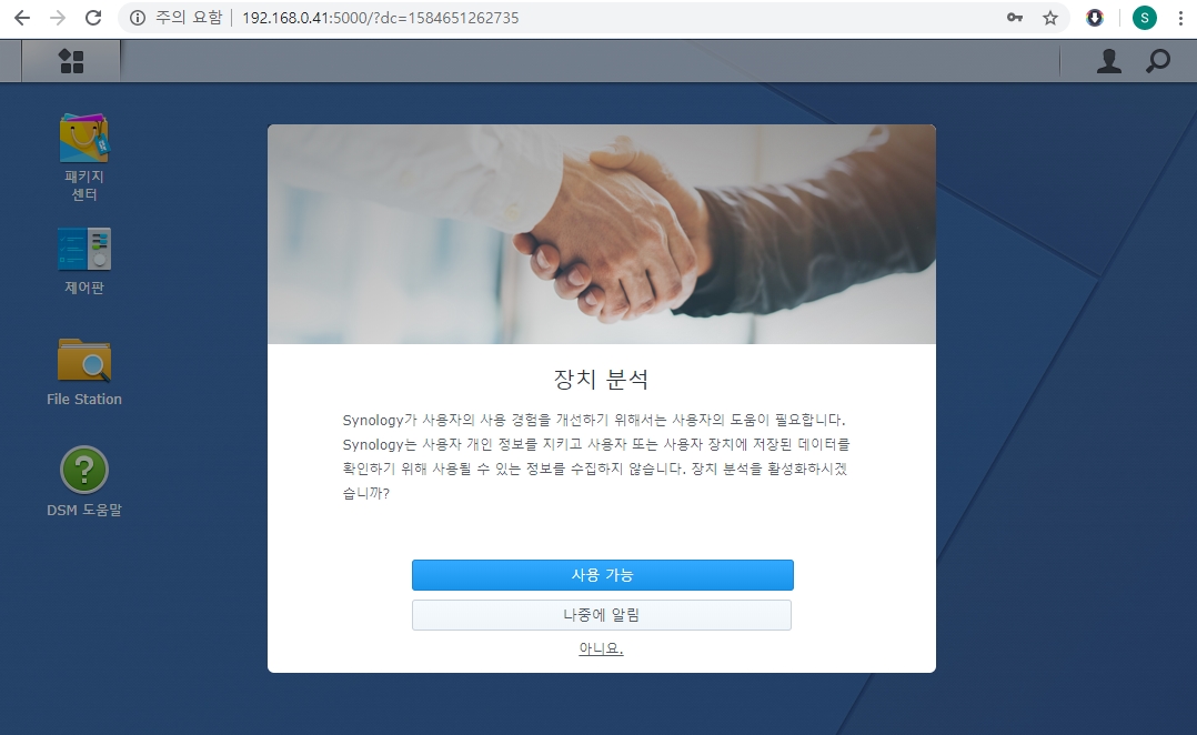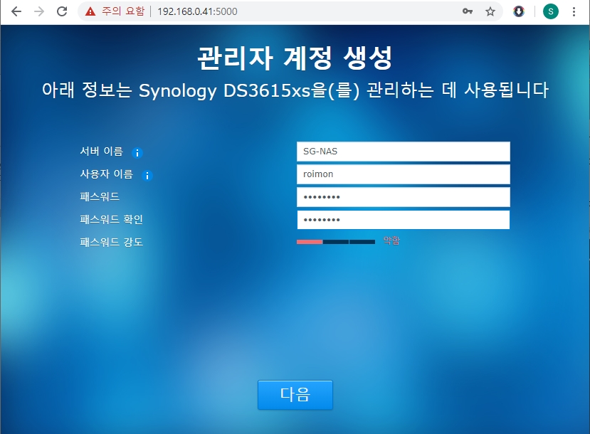 이제 실제 설치 (DSM)