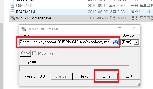 5. Image file 경로를 선택해서 다운 받아 압축을 풀어놓은 "synoboot_3615 -> ds3615_6.2" 아래있는