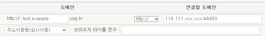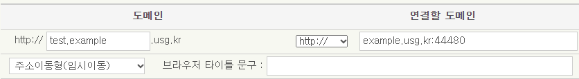 이렇게 하면 브라우저에서 test.example.usg.kr 을 입력하면 example.usg.kr:44480 이걸로 대체 되어 되고