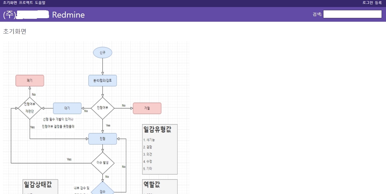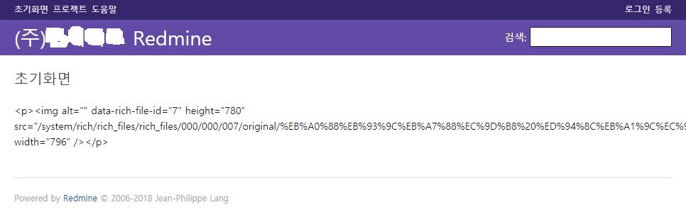 이렇게 하고 난후에 Redmine에 접속을 하면 정상적으로 출력된다.