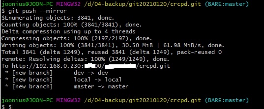 이전 뿐만 아니라 가끔 Git 로컬 PC에 백업 할때도 사용한다.