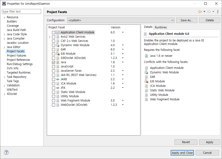 그리고 아래처럼 Project Facets 도 확인해본다.